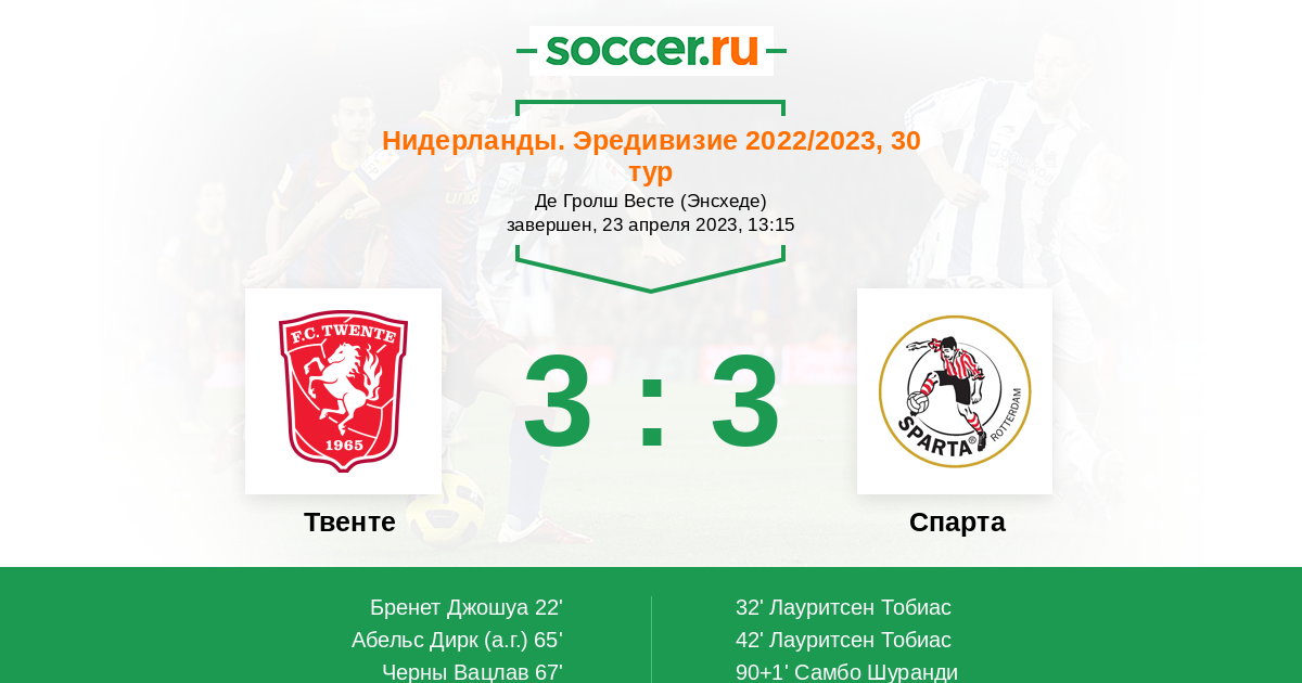 Нидерланды. Эредивизи 22.04.2022 Твенте Логотип футбольный клуб Твенте (Энсхеде) 2:0 Логотип футбольный клуб Спарта (Роттердам) Спарта