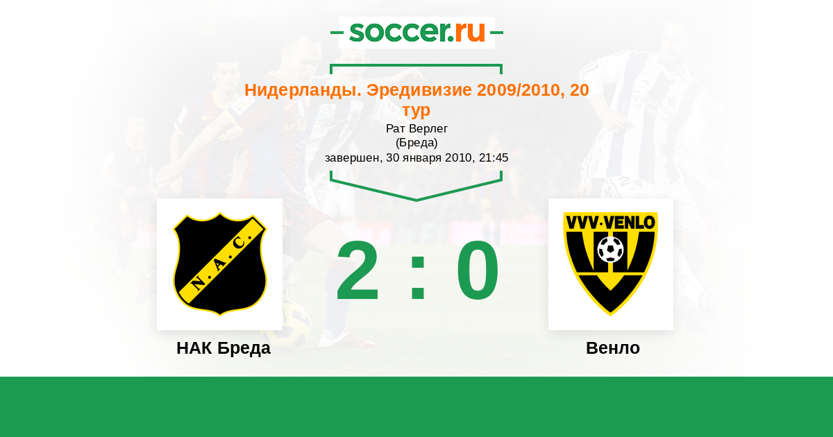 Нидерланды. Эредивизи 05.02.2011 Венло Логотип футбольный клуб Венло 3:0 Логотип футбольный клуб НАК Бреда НАК Бреда