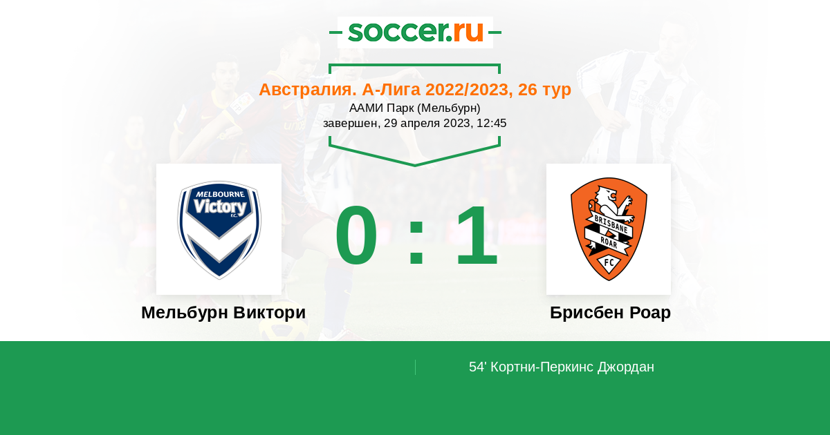 Австралия. А-Лига 06.01.2023 Мельбурн Виктори Логотип футбольный клуб Мельбурн Виктори 0:1 Логотип футбольный клуб Брисбен Роар Брисбен Роар