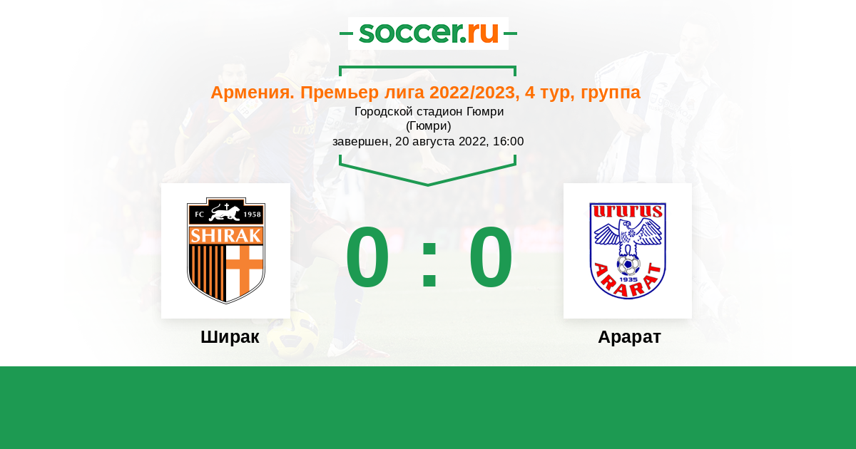 Армения. Премьер-лига 04.06.2020 Ширак Логотип футбольный клуб Ширак (Гюмри) 2:0 Логотип футбольный клуб Арарат (Ереван) Арарат