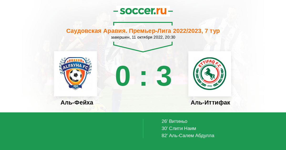 Саудовская Аравия. Премьер-Лига 27.06.2022 Аль-Фейха Логотип футбольный клуб Аль-Фейха (Аль-Маджмаа) 0:1 Логотип футбольный клуб Аль-Иттифак (Даммам) Аль-Иттифак