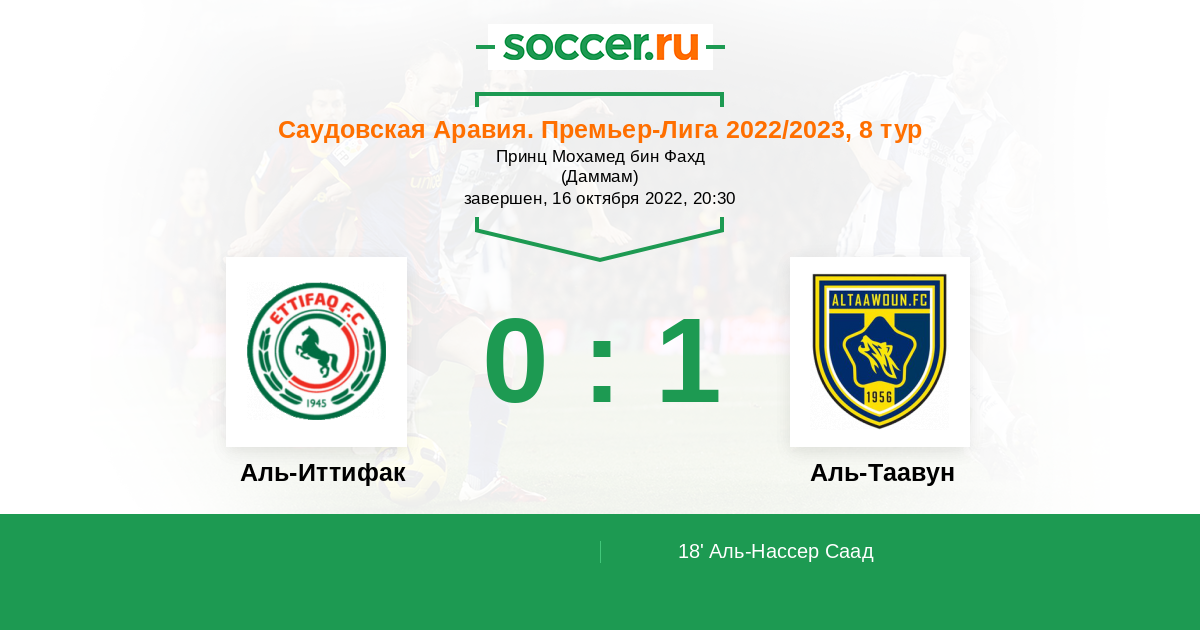 Саудовская Аравия. Премьер-Лига 05.05.2022 Аль-Таавун Логотип футбольный клуб Аль-Таавун (Бурайда) 0:4 Логотип футбольный клуб Аль-Иттифак (Даммам) Аль-Иттифак
