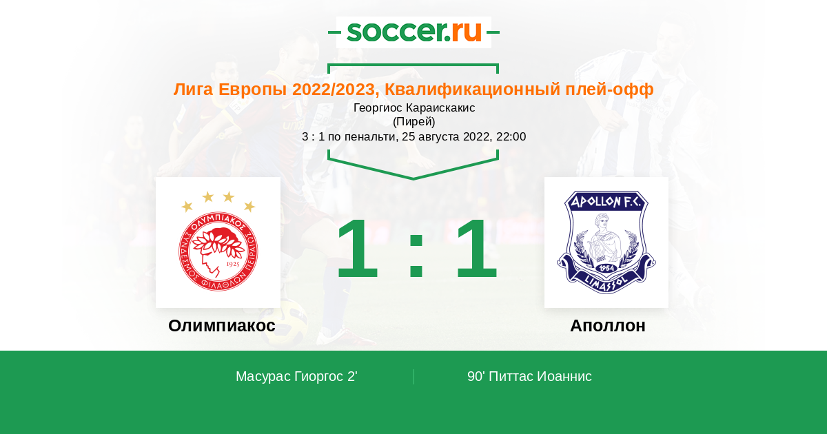 Олимпиакос является опытным еврокубковым бойцом, который много раз играл в Лиге чемпионов и Лиге Европы и совершал сенсации. Что касается гостей, то команда с Кипра не может похвастаться такими успехами. Олимпиакос играет дома, где должен уверенно проходить киприотов.