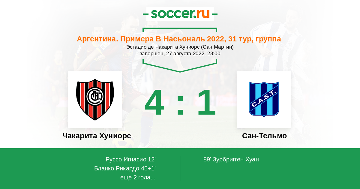 Сан-Тельмо 1:2 0:1 1:1