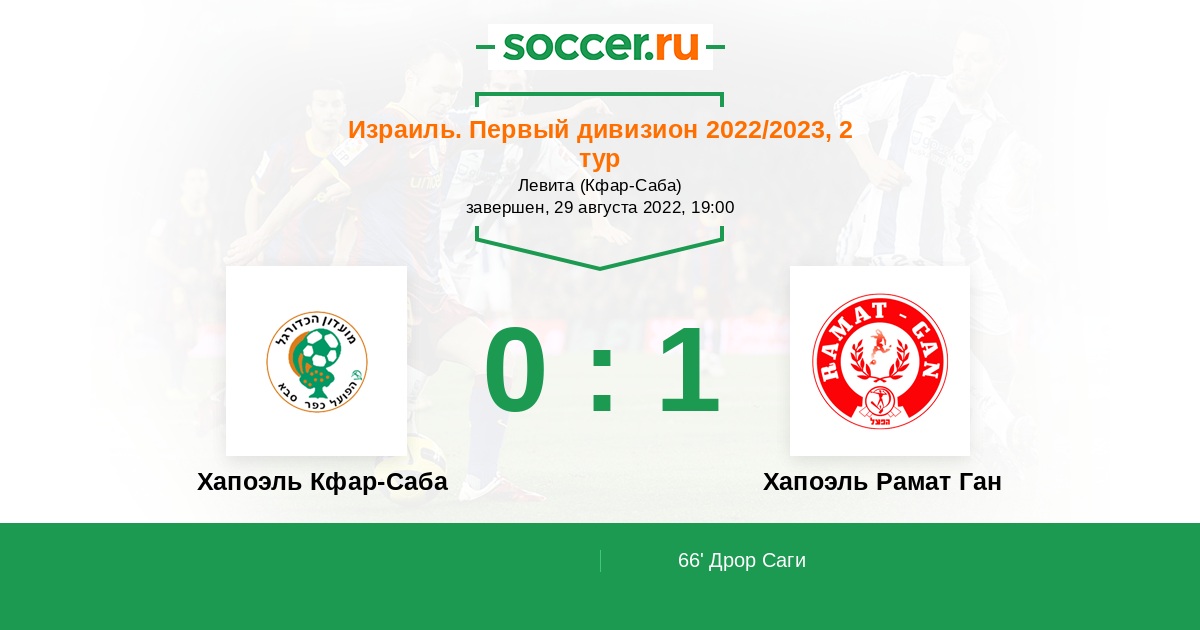 Израиль. Первый дивизион 18.08.2017 Хапоэль Рамат Ган Логотип футбольный клуб Хапоэль Рамат Ган 0:2 Логотип футбольный клуб Хапоэль Кфар-Саба Хапоэль Кфар-Саба