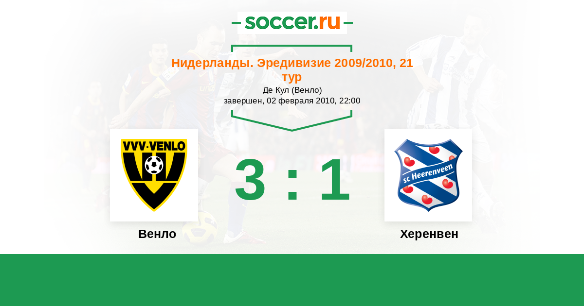 Нидерланды. Эредивизи 04.10.2009 Херенвен Логотип футбольный клуб Херенвен 1:1 Логотип футбольный клуб Венло Венло