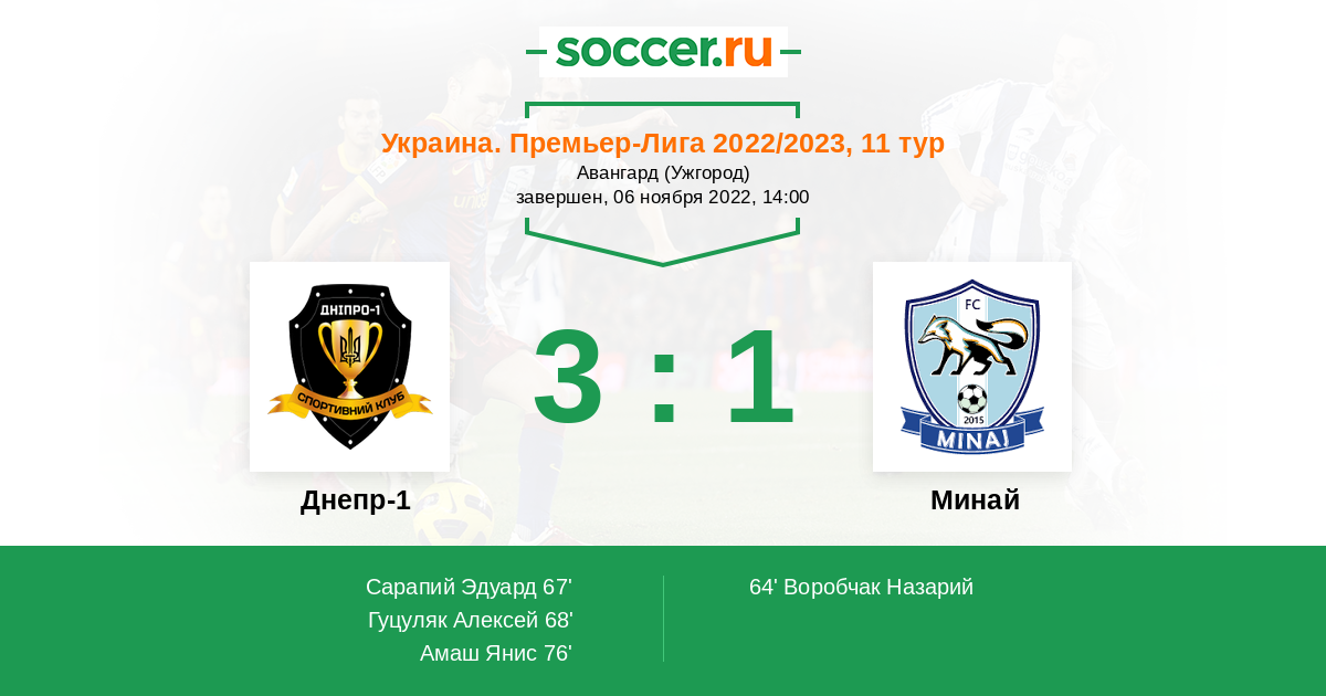 Я думаю что в этом противостоянии более чем явным фаворитом на победу является команда хозяев поля Днепр - 1 . Команда хозяев поля находится на первой строчке турнирной таблицы, а команда гостей Минай лишь на одинадцатой . Вывод один, победа хозяев поля !