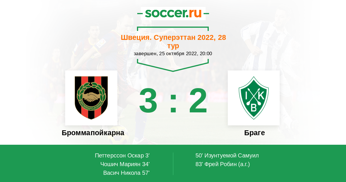 Швеция. Суперэттан 24.04.2022 Браге Логотип футбольный клуб Браге (Бурлэнге) 3:1 Логотип футбольный клуб Броммапойкарна (Стокгольм) Броммапойкарна