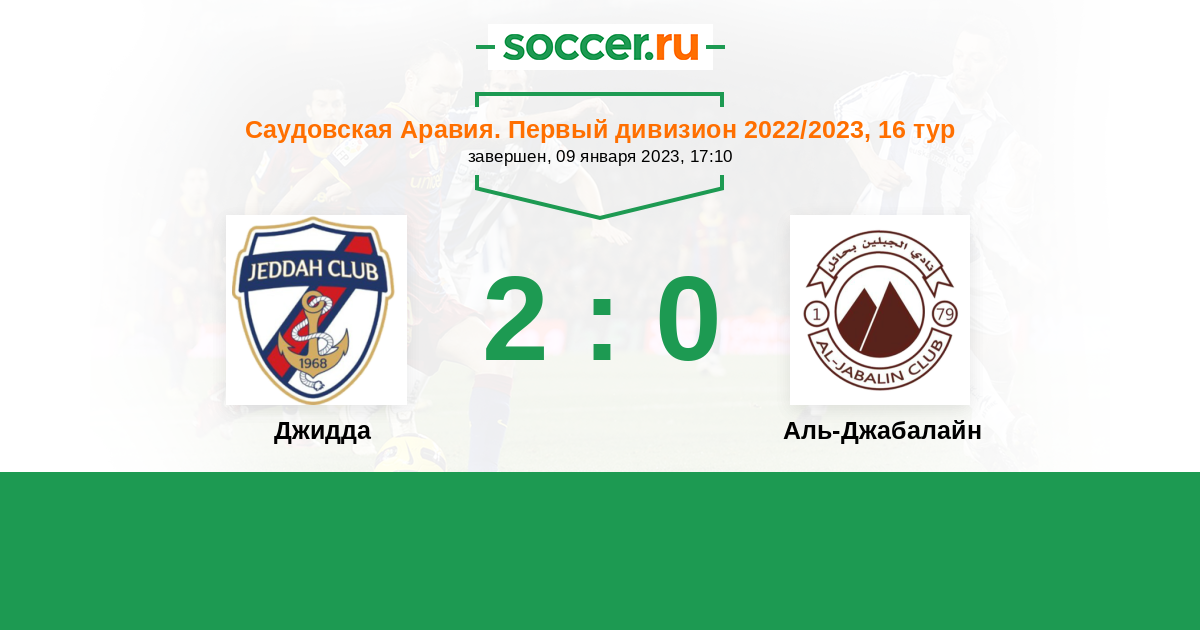 Саудовская Аравия. Первый дивизион 02.02.2026 Джидда Логотип футбольный клуб Джидда 1:3 Логотип футбольный клуб Аль-Джабалайн (Хаиль) Аль-Джабалайн