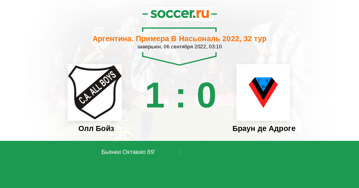 Аргентина. Примера Б Насьональ 05.07.2017 Олл Бойз Логотип футбольный клуб Олл Бойз (Буэнос-Айрес) 1:0 Логотип футбольный клуб Браун де Адроге Браун де Адроге