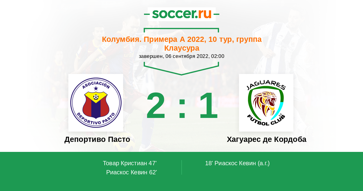 Колумбия. Примера А 09.10.2021 Хагуарес де Кордоба Логотип футбольный клуб Хагуарес де Кордоба (Монтерия) 4:1 Логотип футбольный клуб Депортиво Пасто Депортиво Пасто