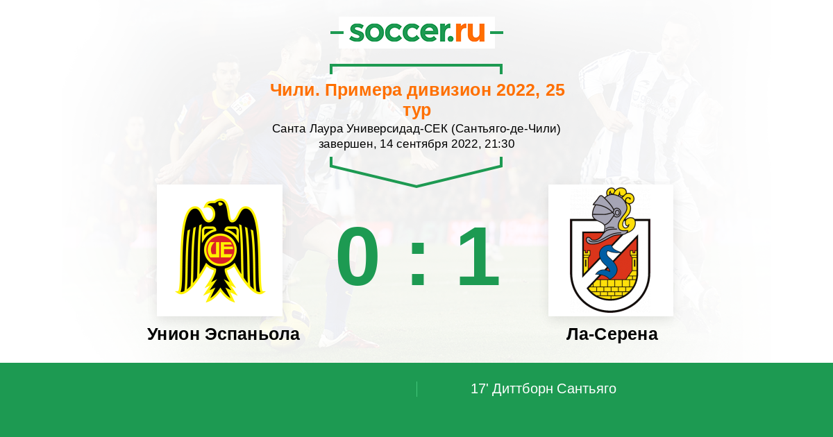 Чили. Примера дивизион 15.04.2022 Ла-Серена Логотип футбольный клуб Ла-Серена 1:2 Логотип футбольный клуб Унион Эспаньола (Сантьяго) Унион Эспаньола