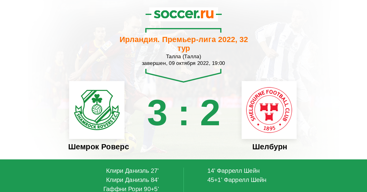 Ирландия. Премьер-лига 29.09.2023 Шемрок Роверс Логотип футбольный клуб Шемрок Роверс (Дублин) 1:0 Логотип футбольный клуб Шелбурн (Драмкондра) Шелбурн