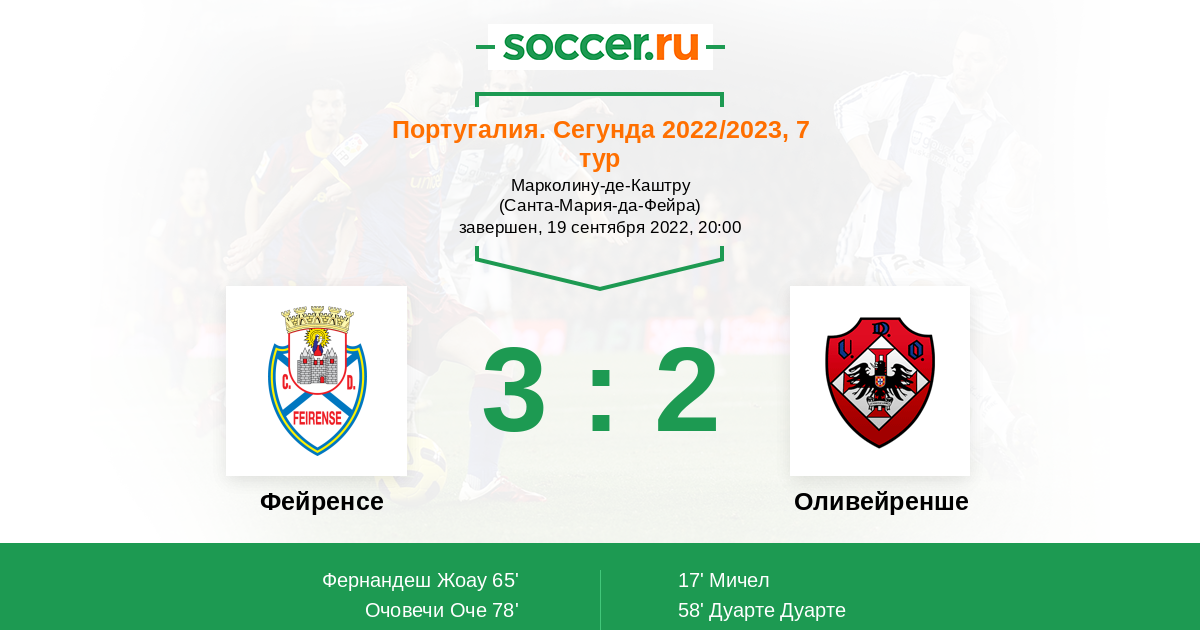 Португалия. Второй дивизион 21.09.2002 Фейренсе Логотип футбольный клуб Фейренсе (Санта-Мария-да-Фейра) 1:4 Логотип футбольный клуб Оливейренше (Оливейра-де-Аземейш) Оливейренше
