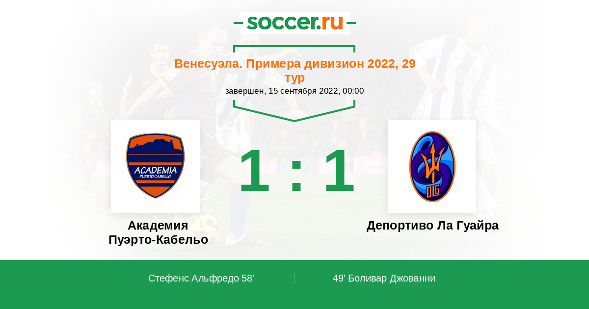 Венесуэла. Примера дивизион 29.07.2021 Пуэрто-Кабельо Логотип футбольный клуб Пуэрто-Кабельо 0:2 Логотип футбольный клуб Депортиво Ла Гуайра (Каракас) Депортиво Ла Гуайра