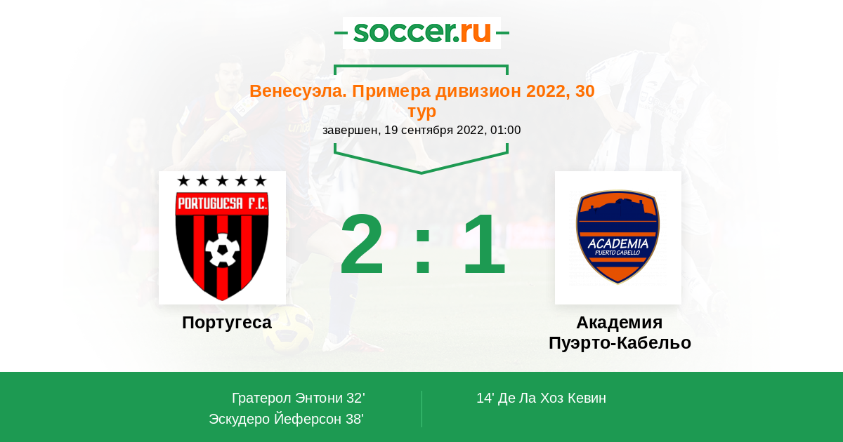 Венесуэла. Примера дивизион 03.10.2022 Португеса Логотип футбольный клуб Португеса (Акаригуа) 1:2 Логотип футбольный клуб Пуэрто-Кабельо Пуэрто-Кабельо