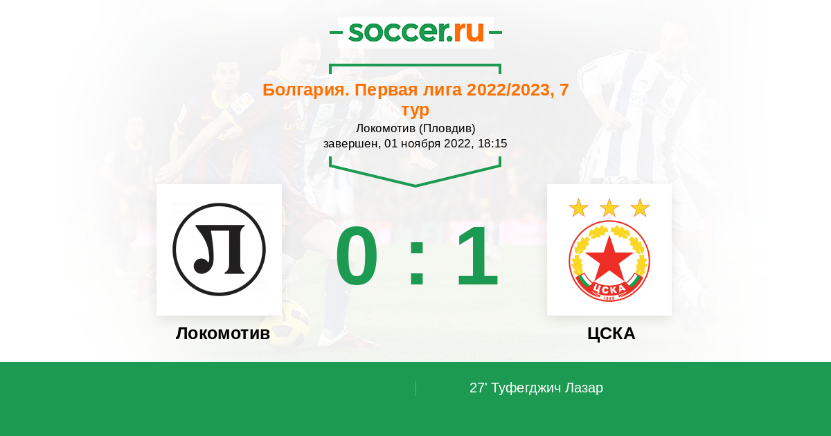 Болгария. Первая лига 20.10.2019 Локомотив Логотип футбольный клуб Локомотив (Пловдив) 1:0 Логотип футбольный клуб ЦСКА (София) ЦСКА
