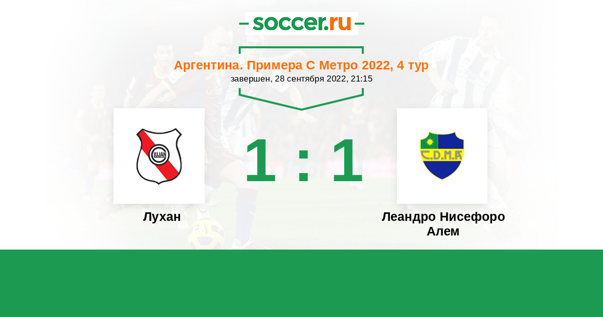 Аргентина. Примера С Метро 09.09.2017 Лухан Логотип футбольный клуб Лухан 1:0 Логотип футбольный клуб Леандро Нисефоро Алем (Буэнос-Айрес) Леандро Нисефоро Алем
