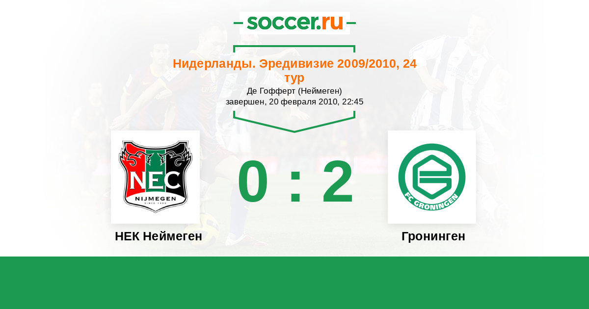 Нидерланды. Кубок 23.12.2009 Гронинген Логотип футбольный клуб Гронинген 0:2 Логотип футбольный клуб НЕК Неймеген НЕК Неймеген
