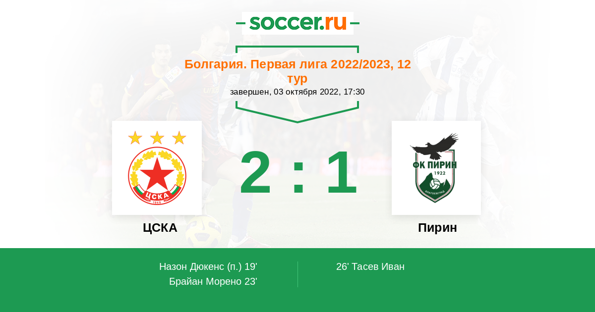 Болгария. Первая лига 21.10.2023 Пирин Логотип футбольный клуб Пирин (Благоевград) 1:2 Логотип футбольный клуб ЦСКА (София) ЦСКА