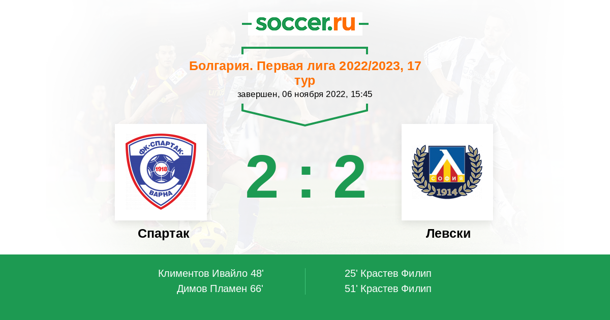 Болгария. Первая лига 16.07.2022 Левски Логотип футбольный клуб Левски (София) 5:0 Логотип футбольный клуб Спартак (Варна) Спартак