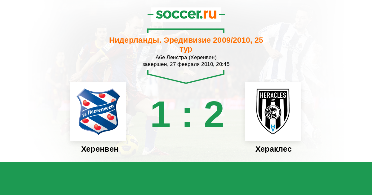 Нидерланды. Эредивизи 06.12.2009 Хераклес Логотип футбольный клуб Хераклес (Алмело) 3:1 Логотип футбольный клуб Херенвен Херенвен