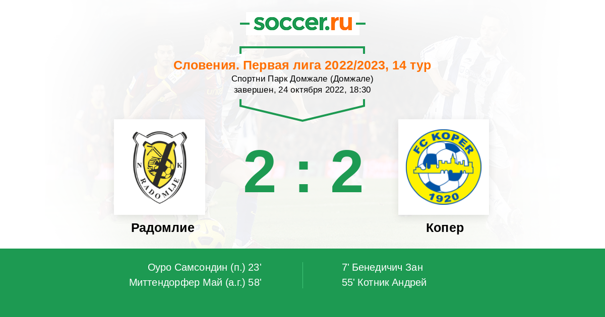 Словения. Первая Лига 01.10.2023 Радомлие Логотип футбольный клуб Радомлие 1:1 Логотип футбольный клуб Копер Копер