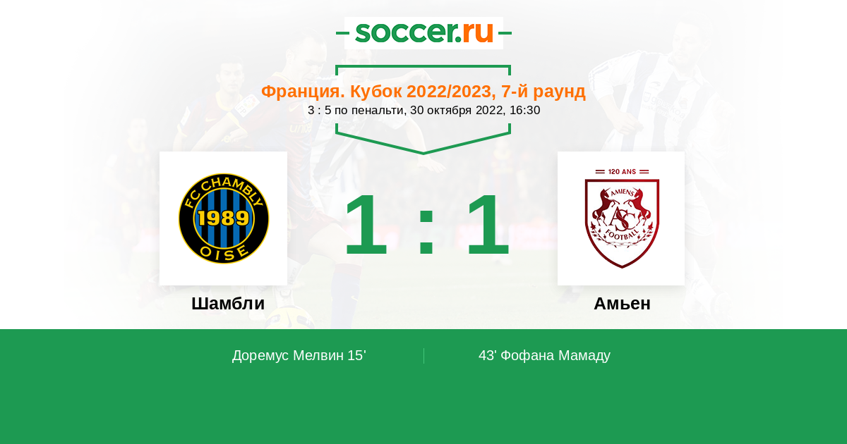 Франция. Кубок 12.11.2016 Амьен Логотип футбольный клуб Амьен 0:2 Логотип футбольный клуб Шамбли Шамбли