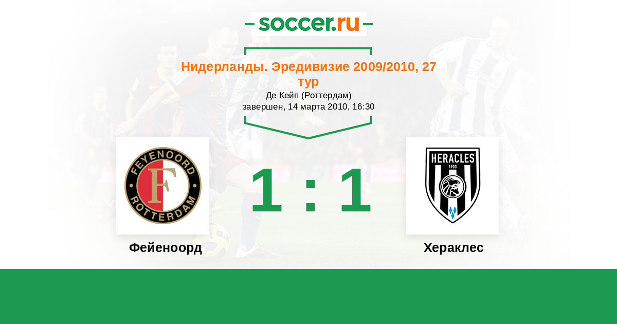 Нидерланды. Эредивизи 16.08.2009 Хераклес Логотип футбольный клуб Хераклес (Алмело) 0:1 Логотип футбольный клуб Фейеноорд (Роттердам) Фейеноорд