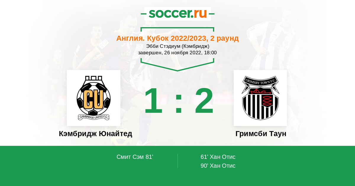 Англия. Вторая Футбольная Лига 03.11.2018 Кэмбридж Юнайтед Логотип футбольный клуб Кэмбридж Юнайтед 1:0 Логотип футбольный клуб Гримсби Таун (Клифорпс) Гримсби Таун