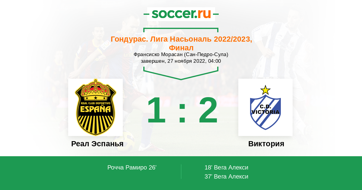 Гондурас. Лига Насьональ 26.02.2012 Реал Эспанья Логотип футбольный клуб Реал Эспанья (Сан-Педро-Сула) 1:2 Логотип футбольный клуб Виктория (Ла-Сейба) Виктория