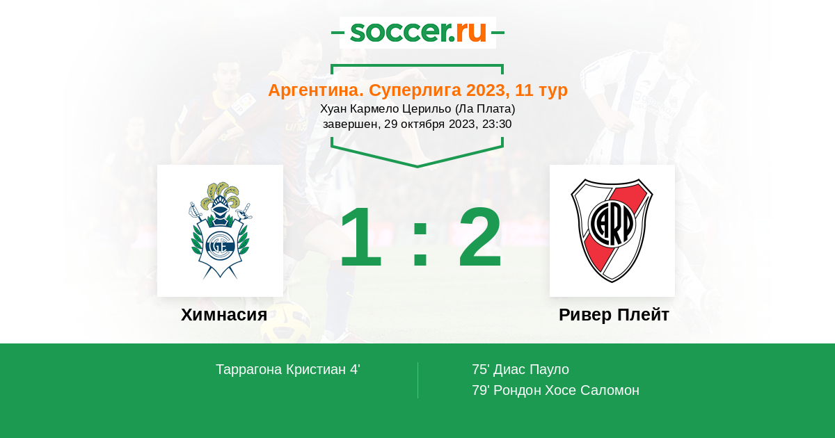 Аргентина. Суперлига 23.08.2021 Химнасия Логотип футбольный клуб Химнасия (Ла-Плата) 1:1 Логотип футбольный клуб Ривер Плейт (Буэнос-Айрес) Ривер Плейт