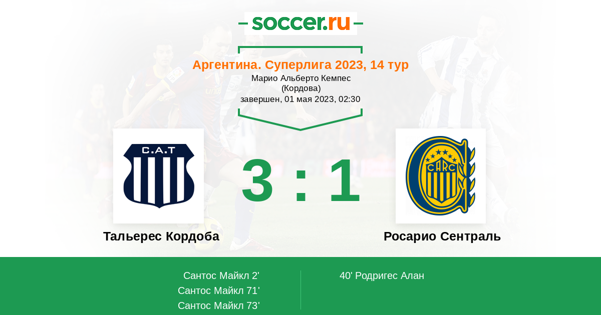 Аргентина. Суперлига 03.09.2023 Росарио Сентраль Логотип футбольный клуб Росарио Сентраль 2:0 Логотип футбольный клуб Тальерес Кордоба Тальерес Кордоба