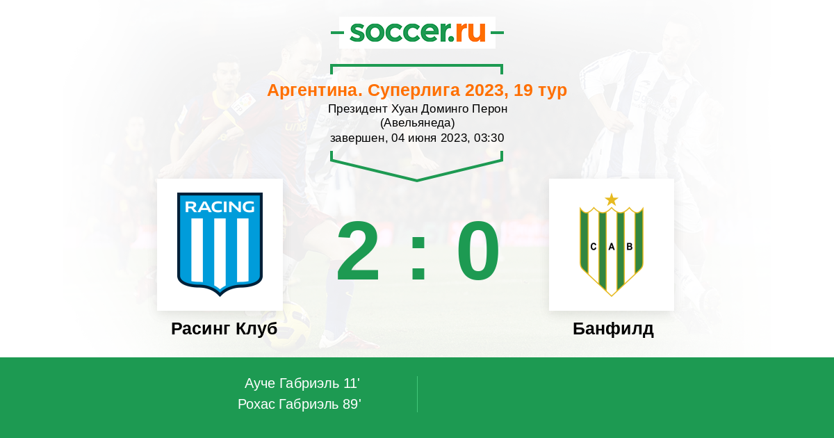 Аргентина. Суперлига 26.06.2017 Банфилд Логотип футбольный клуб Банфилд 1:3 Логотип футбольный клуб Расинг Клуб (Авельянеда) Расинг Клуб