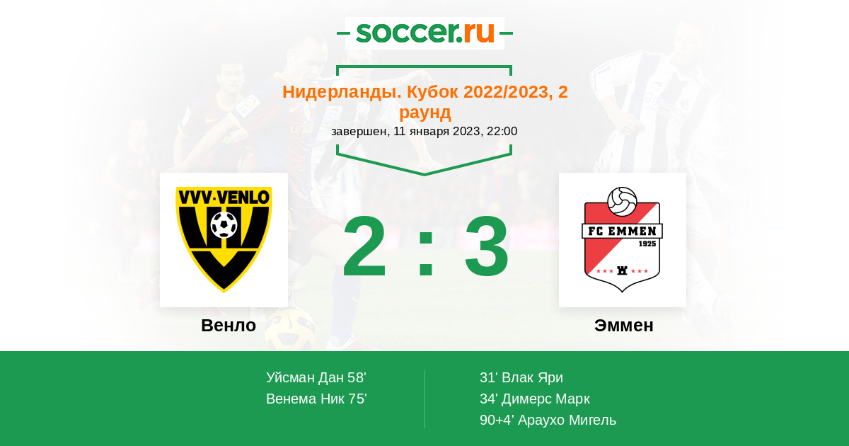Нидерланды. Эредивизи 26.01.2019 Венло Логотип футбольный клуб Венло 2:3 Логотип футбольный клуб Эммен Эммен