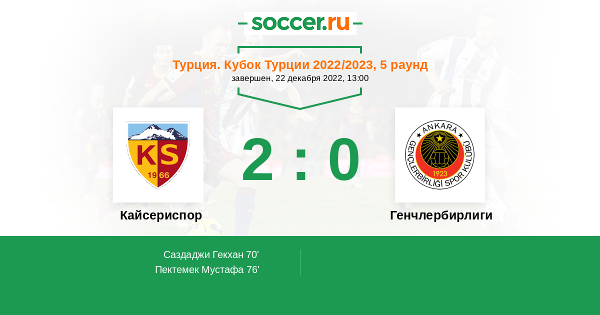 Турция. Кубок 18.01.2024 Кайсериспор Логотип футбольный клуб Кайсериспор 1:2 Логотип футбольный клуб Генчлербирлиги (Анкара) Генчлербирлиги