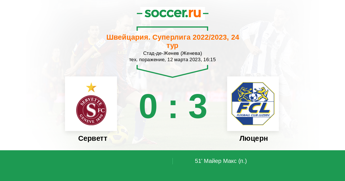 Швейцария. Суперлига 29.05.2023 Люцерн Логотип футбольный клуб Люцерн 0:1 Логотип футбольный клуб Серветт (Женева) Серветт