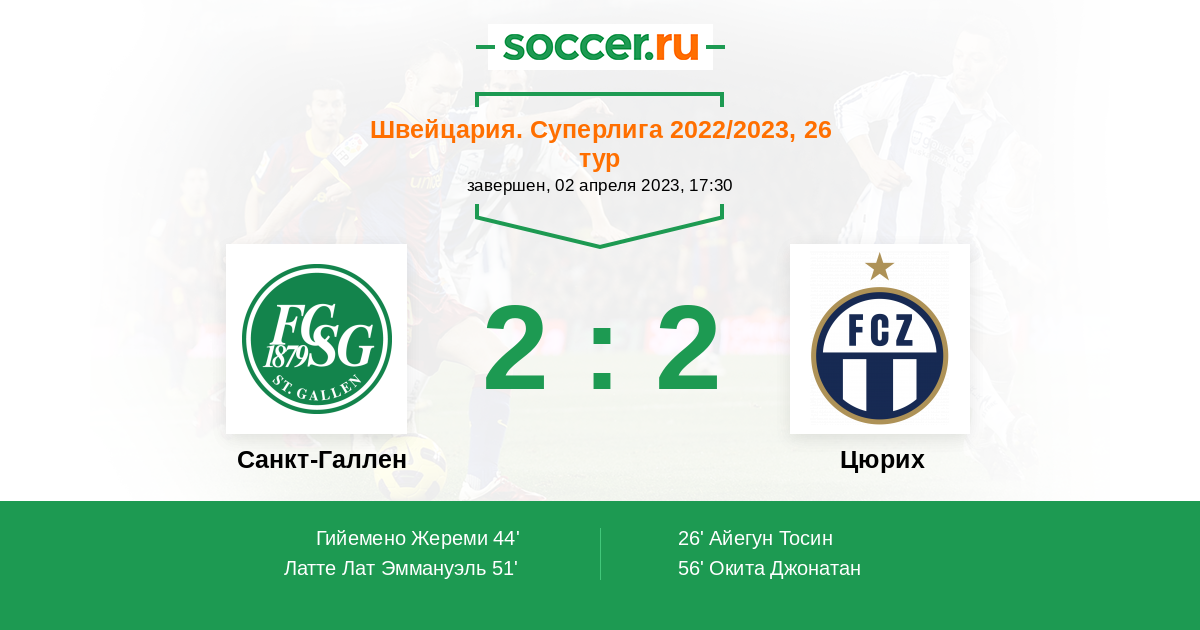 Швейцария. Суперлига 03.04.2021 Санкт-Галлен Логотип футбольный клуб Санкт-Галлен 1:1 Логотип футбольный клуб Цюрих Цюрих