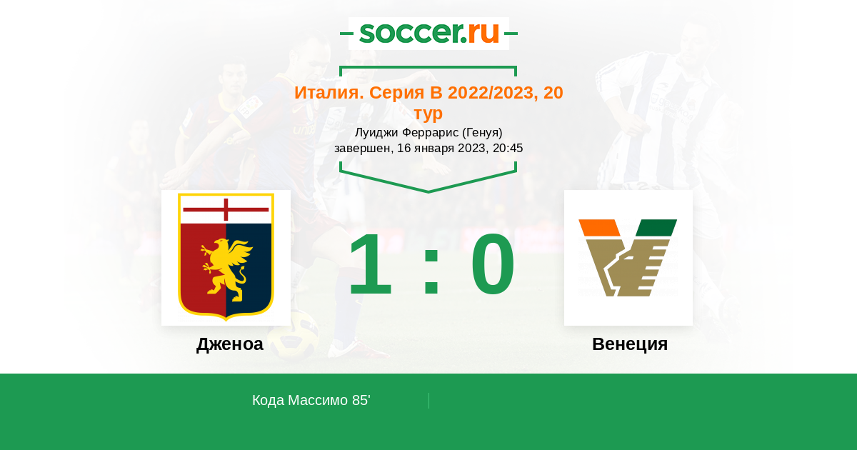 В этом матче между командами Дженоа и Венеция фаворитом является команда хозяев поля. Которым необходимо побеждать и быть в первой двойки команд которые напрямую будут выходить в Серию А. Чтобы не испытывать судьбу в переходных матчах. Удачи
