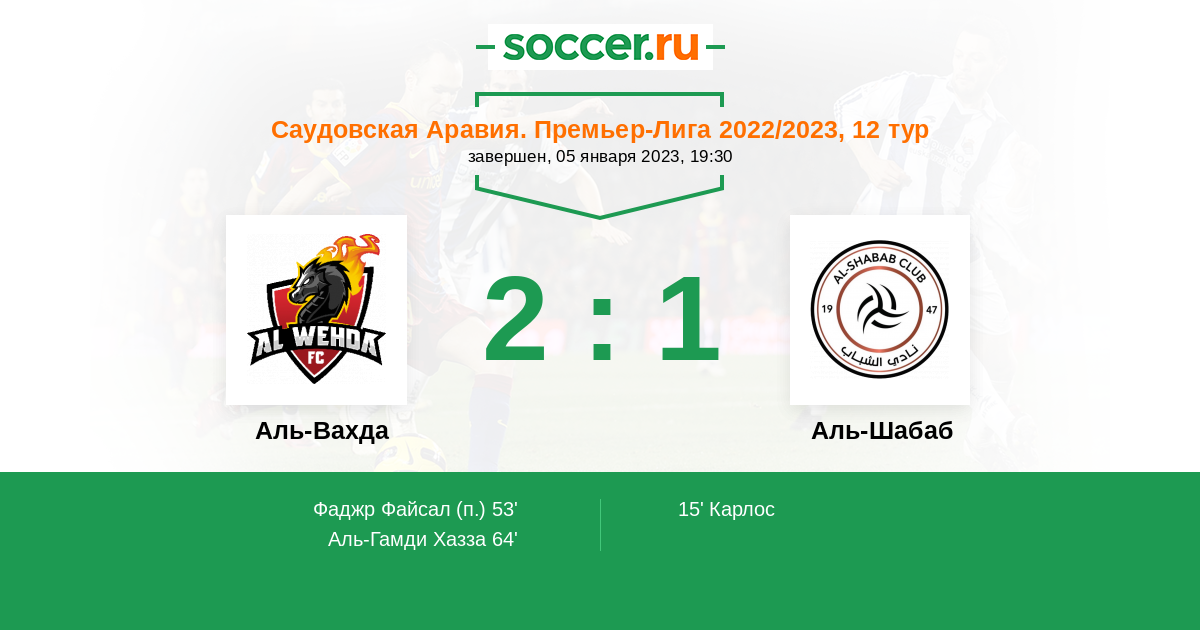 Саудовская Аравия. Премьер-Лига 25.01.2021 Аль-Вахда Логотип футбольный клуб Аль-Вахда (Мекка) 2:4 Логотип футбольный клуб Аль-Шабаб (Эр-Рияд) Аль-Шабаб