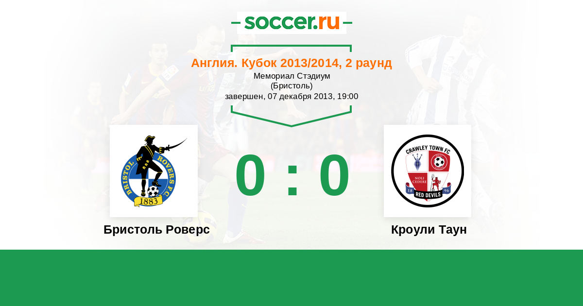 Англия. Кубок 07.12.2013 Бристоль Роверс Логотип футбольный клуб Бристоль Роверс 0:0 Логотип футбольный клуб Кроули Таун Кроули Таун