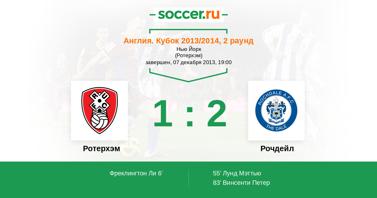 Англия. Кубок 07.12.2013 Ротерхэм Логотип футбольный клуб Ротерхэм (Шеффилд) 1:2 Логотип футбольный клуб Рочдейл Рочдейл
