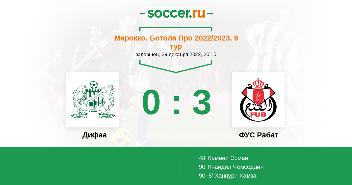 Марокко. Ботола Про 25.12.2020 ФУС Рабат Логотип футбольный клуб ФУС Рабат 1:1 Логотип футбольный клуб Дифаа (Эль-Жадида) Дифаа