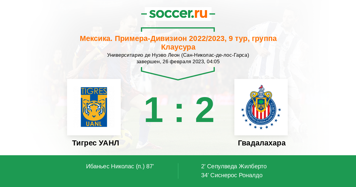 Мексика. Примера-Дивизион 22.01.2024 Тигрес УАНЛ Логотип футбольный клуб Тигрес УАНЛ (Монтеррей) 1:0 Логотип футбольный клуб Гвадалахара Гвадалахара