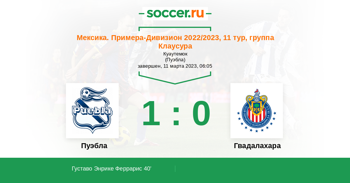 Мексика. Примера-Дивизион 27.02.2022 Гвадалахара Логотип футбольный клуб Гвадалахара 2:3 Логотип футбольный клуб Пуэбла (Пуэбла-де-Сарагоса) Пуэбла