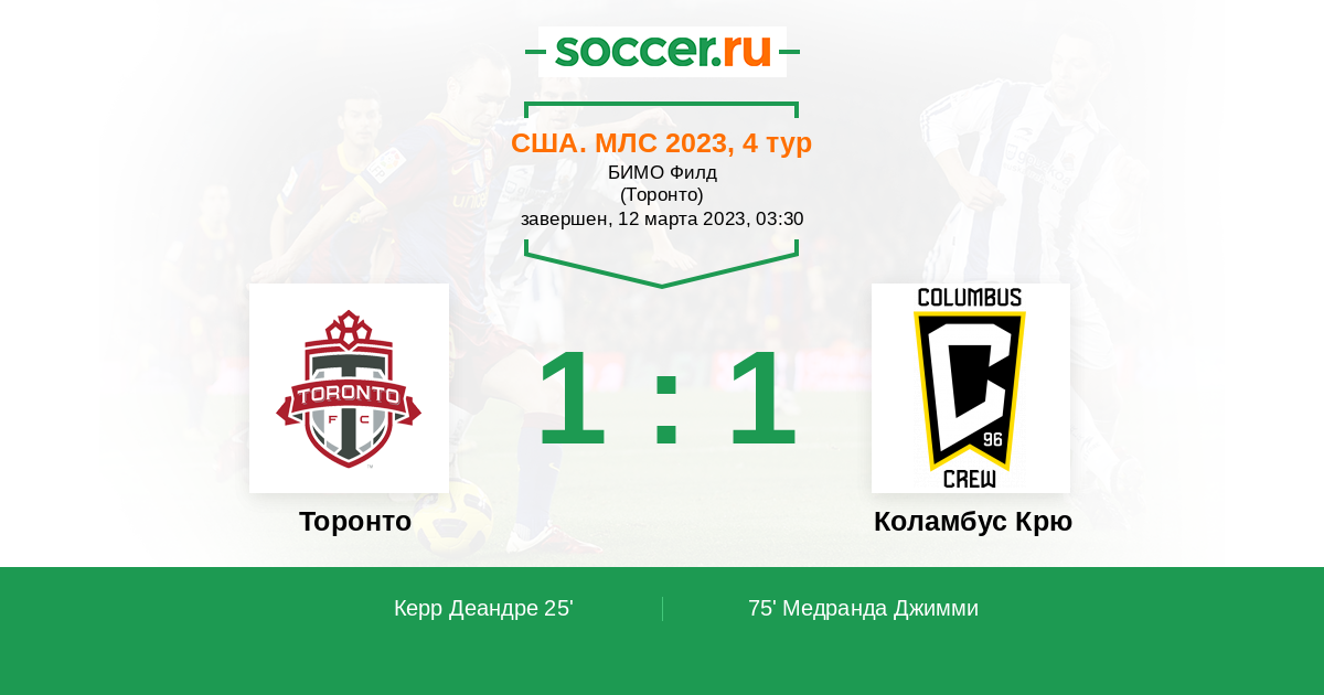 США. МЛС 23.04.2011 Торонто Логотип футбольный клуб Торонто 1:1 Логотип футбольный клуб Коламбус Крю Коламбус Крю
