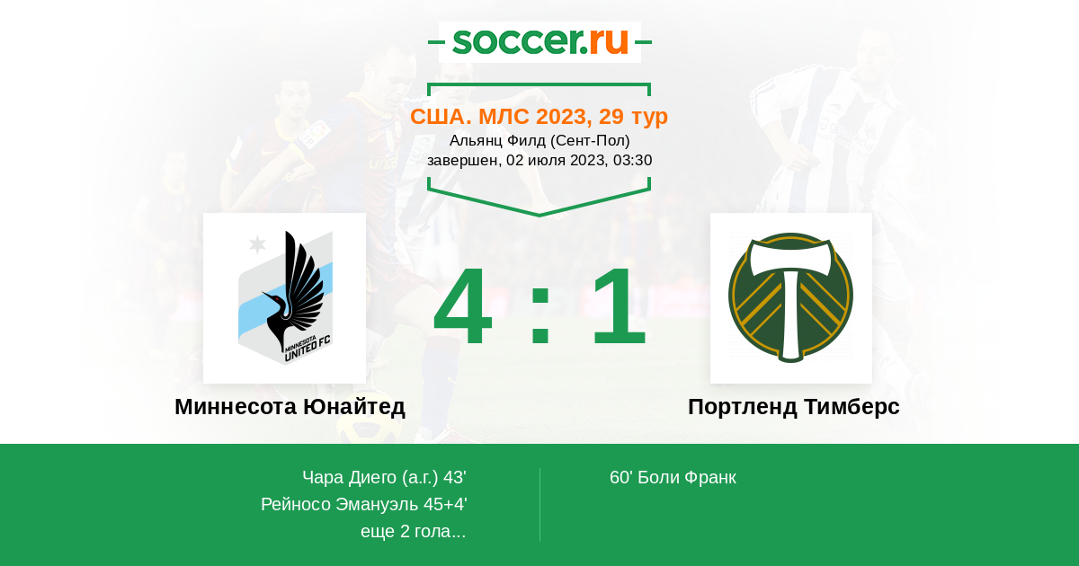 США. МЛС 25.07.2021 Миннесота Юнайтед Логотип футбольный клуб Миннесота Юнайтед 2:1 Логотип футбольный клуб Портленд Тимберс Портленд Тимберс