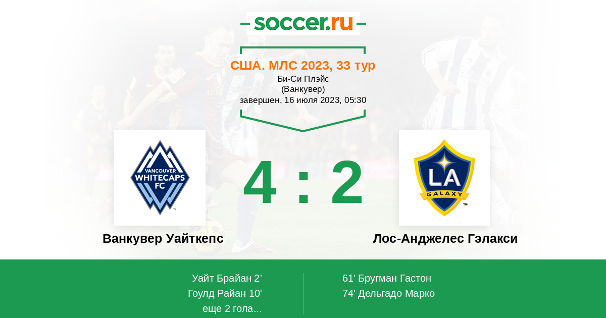 США. МЛС 02.04.2017 Ванкувер Уайткепс Логотип футбольный клуб Ванкувер Уайткепс 4:2 Логотип футбольный клуб Лос-Анджелес Гэлакси Лос-Анджелес Гэлакси