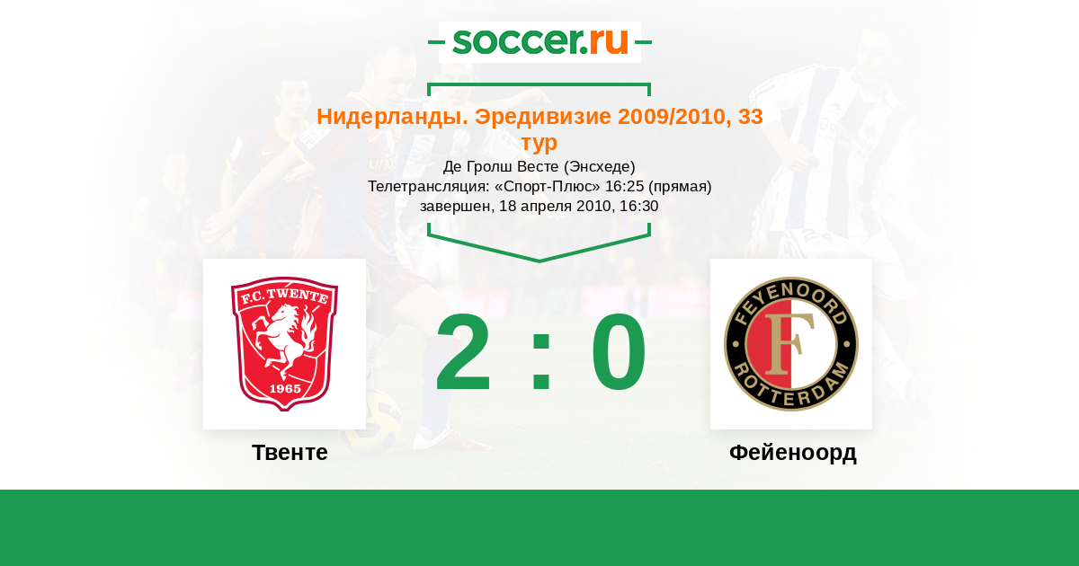 Нидерланды. Эредивизи 18.04.2009 Фейеноорд Логотип футбольный клуб Фейеноорд (Роттердам) 1:0 Логотип футбольный клуб Твенте (Энсхеде) Твенте