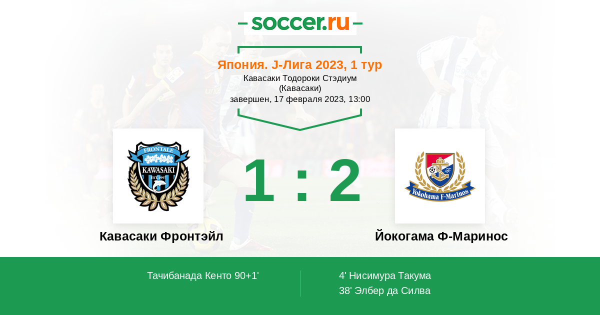 Япония. J-Лига 1 26.02.2021 Кавасаки Фронтэйл Логотип футбольный клуб Кавасаки Фронтэйл 2:0 Логотип футбольный клуб Йокогама Ф-Маринос Йокогама Ф-Маринос